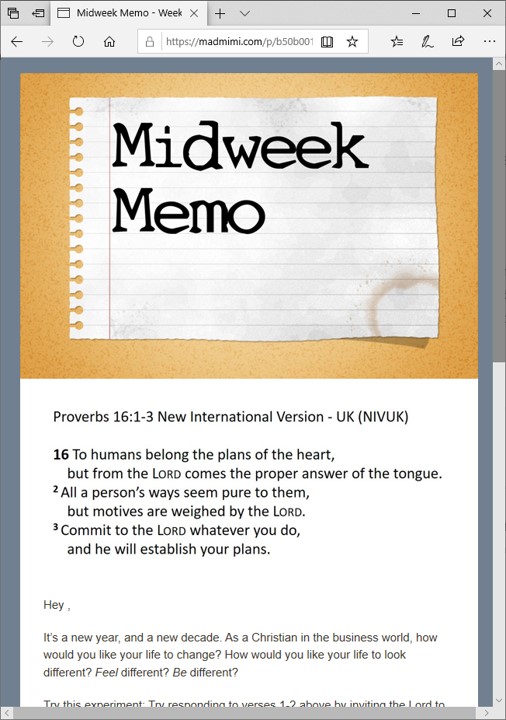 The Midweek Memo is a ministry of BusinessANDmission.org. We want to help all Christians in business, learn how to use their God given gifts and influence to see God show up at work.